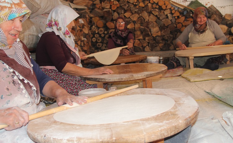 Türkiye’nin ceviz ihtiyacının yaklaşık yüzde 8’ini karşılayan Oğuzlar ilçesinde kadınlar, her yıl eylül ayı sonunda başlayan ceviz hasadı öncesinde, kış boyunca tüketecekleri yufkayı pişiriyor. Kışlık yufka mesaisinde kadınlar, her gün bir kişi için yufka pişirerek birbirlerine destek oluyor. Yufkanın pişirildiği tandırda yakacak olarak, geçen yılki ceviz hasadından kalan kabuklar da kullanılıyor.