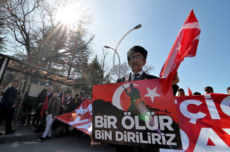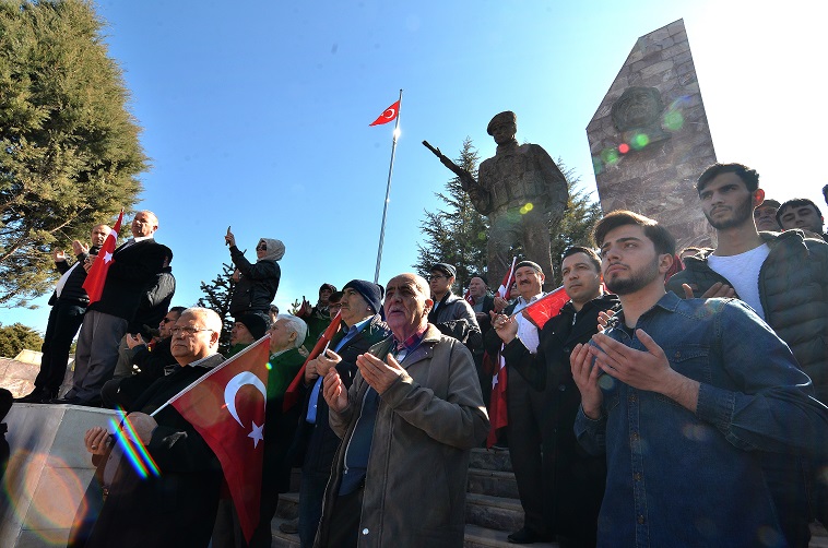 Son Güncelleme: 3 Mart 2020 15:03 Çorum’da “Şehitlere Saygı” yürüyüşü düzenlendi. Çorum Belediyesinin çağrısı üzerine Atatürk Anıtında bir araya gelen vatandaşlar, ellerinde Türk bayraklarıyla, “Şehitler ölmez vatan bölünmez” sloganları atarak Çorum Şehitliğine kadar yürüdü. Şehitlik’te şehitler için Kuran okunup dua edildi. (AA)