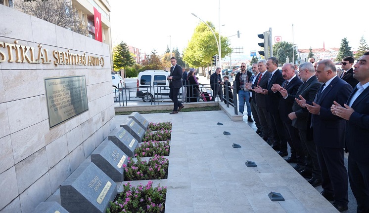 Abidede 16 Türk devletinin bayraklarıyla ay-yıldızın bir arada işlendiğini anlatan Aşgın, şunları kaydetti: “Cumhuriyet’in 102. yılında bu tür eserlerle milli bilinç ve birlik ruhuna katkı sağlamayı hedefliyoruz. 16 büyük Türk devletimizin bayrakları Osmanlı’ya kadar Türk devletlerini temsil ediyor ama üstündeki ayı başka güzel, yıldızı başka güzel olan, rengini şehitlerimizin al kanından alan, ayımızı ve yıldızımızı adeta bir yakut gibi, kıymetli bir taş gibi on yedincisi olarak en üstüne koyduk.” Törende konuşmaların ardından kurdele kesilerek, şehitlerin ruhu için dua edildi. Törene Hitit Üniversitesi Rektörü Prof. Dr. Ali Osman Öztürk, AK Parti İl Başkanı Yakup Alar, MHP İl Başkanı İhsan Çıplak, Büyük Birlik Partisi İl Başkanı Özkan Yandım da katıldı. (AA)