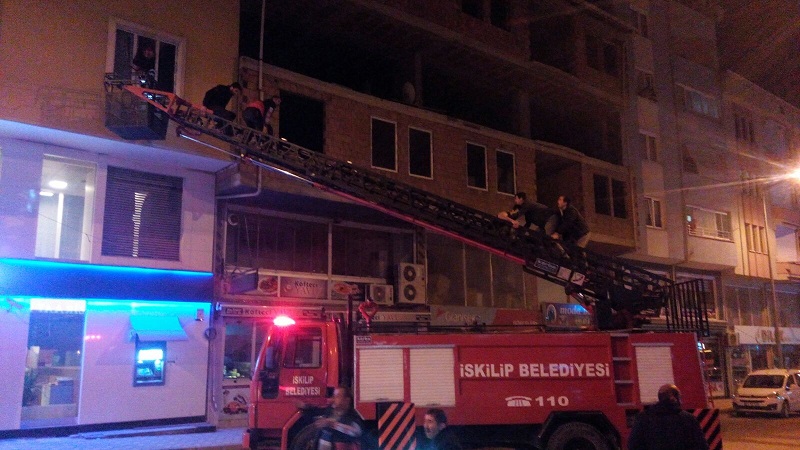 Edinilen bilgilere göre, Çorum Caddesinde bulunan bir apartmanın 2. katında bulunan öğrenci evinde bu gece saat 22:45 sularında bilinmeyen bir nedenden dolayı yangın çıktı. Evden dumanlar yükseldiğini gören vatandaşlar itfaiyeyi arayarak yardım istedi. İhbar üzerine olay yerine itfaiye ve polis ekipleri sevk edildi. Kısa sürede yangına müdahale eden itfaiye ekipleri, apartmanın ikinci katında kalan 5 öğrenciyi kurtardı. Yangının öğrencilerin evde yemek pişirdiği esnada tüpten çıktığı öğrenildi. Olay yerinde ilk müdahalesi yapılan öğrenciler İskilip Atıf Hoca Devlet Hastanesi’ne kaldırıldı. Öğrencilerin sağlık durumunun iyi olduğu öğrenildi. Olayla ilgili başlatılan soruşturma sürüyor. İHA