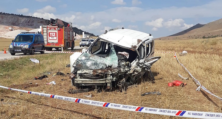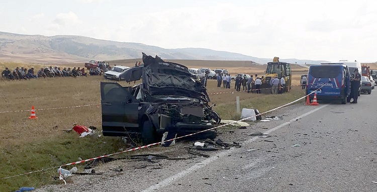 Çorum’un Alaca ilçesinde 2 otomobilin çarpıştığı kazada, 1 kişi öldü, 9 kişi yaralandı. Aziz Öcalan’ın (55) kullandığı 66 FK 871 plakalı otomobil ile Mustafa Ö’nün kullandığı 34 KZA 34 plakalı otomobil, Alaca-Tokat kara yolu Sancı köyü yakınlarında çarpıştı. Sürücü Öcalan olay yerinde hayatını kaybetti, diğer aracın sürücüsü ile araçlardaki 8 kişi yaralandı. Yaralılar, sağlık ekiplerince olay yerinde yapılan ilk müdahalenin ardından Alaca ve Yozgat’ın Aydıncık ilçesindeki hastanelere nakledildi. (AA)