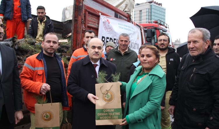 Vali Dağlı, “Bu haftada ağaçlandırma çalışmalarımız devam edecek. Bugün 9 bin fidanı çocuklar ve vatandaşlarımıza dağıtacağız. Bu hafta 42 bin fidanı toprakla buluşturacağız. Ağaçlandırma çalışmalarımız devam ediyor. Amacımız, Çorum’da yeşil olmayan alan kalmaması. Bu gaye ile hep birlikte çalışıyoruz. Öğrencilerimize de ağaç sevgisi, doğa sevgisi ve çevre bilincini aşılamak için anaokulundan başlamak üzere çalışmalarımızı devam ettireceğiz. Çorum’umuz, ülkemiz, dünya için yeşil önemli” ifadelerini kullandı.