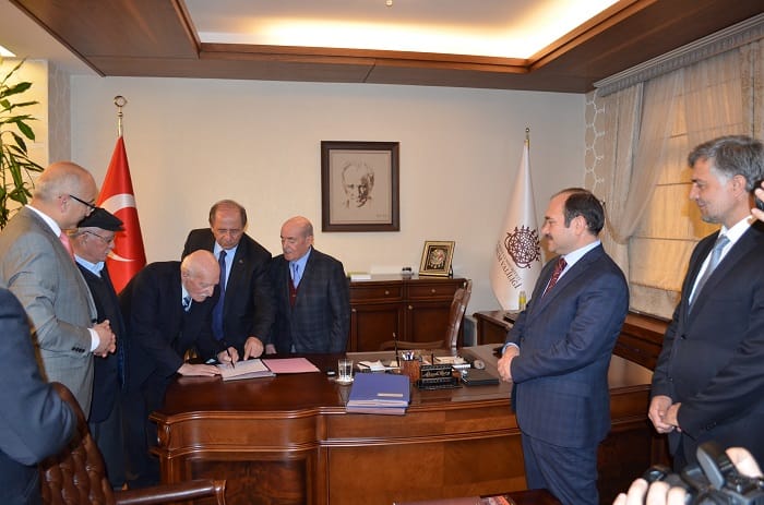 Çorum Valisi Ahmet Kara’nın makamında düzenlenen protokol imza törenine Alacalı hayırseverler Selahattin, Secaattin ve Mehmet Coşkun’un yanı sıra İl Milli Eğitim Müdürü Seyit Ali Büyük, Alaca Belediye Başkanı Muhammet Eyvaz, Başkan Yardımcısı Yüsüf Büküş ve Alaca İlçe Mili Eğitim Müdürü Hürrem Dursun katıldı.