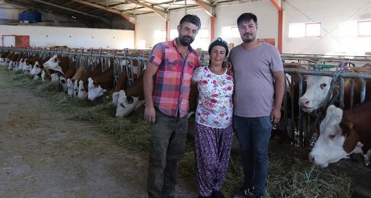 “Ömrümüz tarım ve hayvancılıkla geçti. Uzun yıllar köyümüzün muhtarlığını da yapan rahmetli eşim, TKDK’dan daha önce hibe alarak işletme sahibi olan bir arkadaşının da tavsiyesi üzerine köyümüzün hemen yakınında bulunan arazimiz üzerine bu tesis için proje hazırlattı. 2018 yılı Temmuz ayında 49 baş simental ırkı gebe düve alarak tam kapasite ile işletmeyi faaliyete geçirdik. Eşim, 2 oğlum ve ben gecemizi gündüzümüze katarak işletmeyi bugünlere getirdik. Her şey yolunda giderken eşim geçirdiği kaza sonrası hayatını kaybetti. Canlı hayvanın olduğu bu tesis ihmal edilecek ya da acınızı yaşamanıza fırsat verecek kadar size zaman tanımıyor. Hem acımızı yaşadık hem de hayvancılık faaliyetlerimizi sürdürdük. O dönemde TKDK hep yanımızda oldu. İşletmenin devamı için sözleşmemizde yer alan tüm konular hakkında bizleri aydınlatıp, izlenecek yol hakkında bilgilendirdiler. TKDK ile yeni bir sözleşme imzalayarak işletmenin faaliyetlerini sürdürmeye yönelik eşimin yükümlülüklerini üzerime aldım.