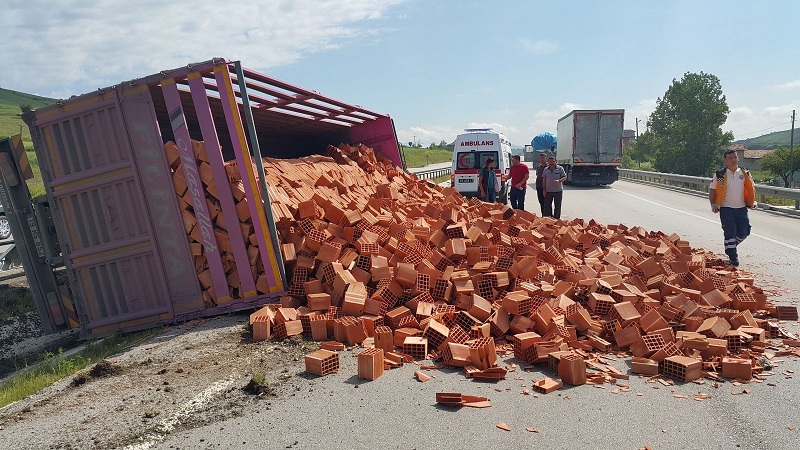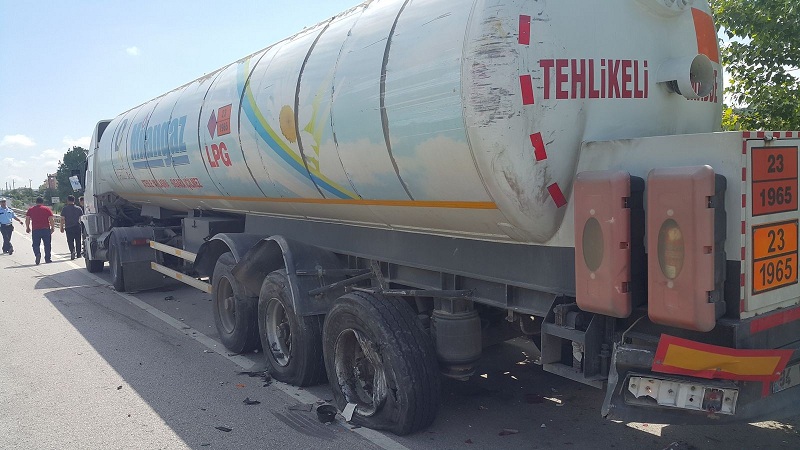 Edinilen bilgilere göre, Çorum’un Osmancık İlçesinden yola çıkan Şerif Önder (28) yönetimindeki 19 HS 852 plakalı tuğla yüklü kamyon, lastiğinin patlaması sonucu, aynı istikamette olan Halil İbrahim Saka’nın (48) kullandığı tüpgaz yüklü 41 F 1588 plakalı tankere arkadan çarptı. Çarpmanın etkisiyle tuğla yüklü kamyon bariyerlere çarparak yola yan yattı. Üzerinde bulunan tuğlalar ise Havza-Samsun karayoluna döküldü. Ulaşım kontrollü şekilde sağlanırken, tüpgaz yüklü tankerin dolu olması ve yan yatmaması muhtemel bir facianın öne geçti. Araç sürücüleri burnu bile kanamadan olayı atlattı. Polis olayla ilgili soruşturma başlattı.