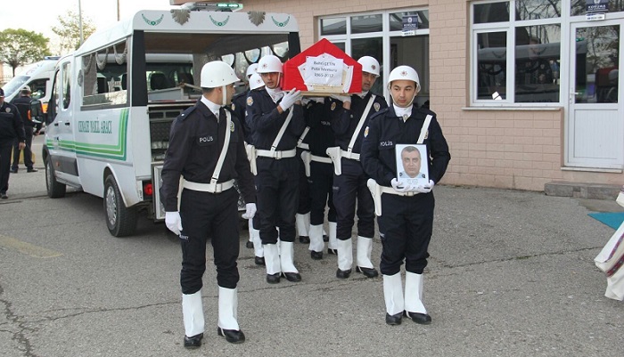 Son Güncelleme: 7 Aralık 2017 12:54 Giresun İl Emniyet Müdürlüğü Koruma Şube Müdürlüğünde görevli Çorumlu polis memuru Bahri Çetin, kontrol için gittiği hastanede bağırsak kanseri olduğunu öğrendi. Tedavi için kısa bir süre önce Samsun Ondokuz Mayıs Üniversitesi Tıp Fakültesi’ne yatan Çetin, dün fenalaşarak yoğum bakım ünitesine alındı. Doktorların yaptığı tüm müdahalelere rağmen kurtarılamayan Çeti,n hayata gözlerini yumdu. Evli ve 2 çocuk babası olan Çetin için Giresun İl Emniyet Müdürlüğü bahçesinde tören düzenlendi. Düzenlenen törenin ardından Bahri Çetin’in cenazesi defnedilmek üzere memleketi Çorum’un Osmancık ilçesine gönderildi. (İHA)