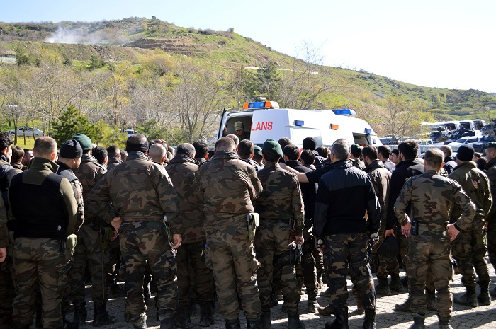 Şırnak’ta, güvenlik güçlerinin teröristlerden temizlenen bir binada arama-tarama çalışması yaptığı sırada tuzaklanan el yapımı patlayıcının infilak etmesi sonucu göçük altında kalan polisleri kurtarmaya giden polislere uzun namlulu silahla ateş açıldı. Saldırı sonucu şehit olan özel harekat polisi Hıdır Gençaslan için uğurlama töreni düzenlendi. Şırnak 23’üncü Jandarma Sınır Tümen Komutanlığında düzenlenen törene, Vali Ali İhsan Su, Çakırsöğüt 1’inci Jandarma Tugay Komutanı Tuğgeneral Ali Osman Gürcan, Emniyet Müdürü Celal Sel, şehidin silah arkadaşları ve geçici köy korucuları katıldı. Şehidin cenazesinin alana getirilmesi ile başlayan törende, şehit için dua edildi. Sonra şehidin naaşını omuzlayan silah arkadaşları tekbir ve salavatlar eşliğinde ambulansa taşıdı. Aslen Çorumlu olan evli ve iki çocuk babası Gençaslan, toprağa verilmek üzere eşinin memleketi Antalya’ya uğurlandı. (İHA)