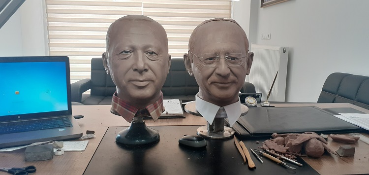 Son Güncelleme: 29 Mayıs 2020 12:14 Yaptığı ünlü ve tanınmış kişiler ait balmumu heykelleri Türkiye’nin çeşitli müzelerinde sergilenen genç sanatçı Kerim Kaplan, Çorum’un Osmancık ilçesinde bulunan atölyesinde sanatsal çalışmalarına devam ediyor. 19 Mayıs Üniversitesi görsel sanatlar öğretmenliği bölümünden mezun olan genç sanatçı Kerim Kaplan (31), Cumhurbaşkanı Recep Tayyip Erdoğan ile Cumhuriyet Halk Partisi Genel Başkanı Kemal Kılıçdaroğlu’nun balmumu heykellerini yaptı. Yurt dışında, Dubai, Kosova, ülkemizde Türk Silahlı Kuvvetleri, belediyeler, kaymakamlıklar ve özel kurumlara ait çeşitli müzelerde balmumu heykel eserlerinin sergilendiğini belirten Kaplan, “Resmi bir kurumun siparişi üzerine Cumhurbaşkanı Recep Tayyip Erdoğan ve Cumhuriyet Halk Partisi Genel Başkanı Kemal Kılıçdaroğlu’nun heykellerinin de bulunduğu bir çalışma içerisine başlamıştık. Ancak 2018 krizinde kurumların bütçelerinin kısıtlanmaları sebebiyle projemiz ertelendi. Heykel çalışmalarımız model aşamasında kaldılar. Bittiklerinde birebir boylarında, birebir takım elbiseler giyecekler ve balmumu tekniğinde silikon malzemeden üretilmiş hiperrealist heykeller olacaklar. İki siyasetçi de, hiçbir siyasi ayrım gözetmeksizin aynı özveri ile yaptığım çalışmalardır. İki siyasetçiyi de bu şekilde sanat bir araya getirmiş oldu” dedi.