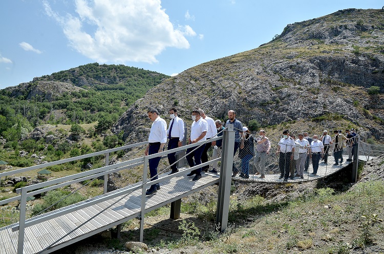 Son Güncelleme: 10 Temmuz 2020 11:19 Hattuşa, antik şehri çevreleyen 7 kilometrelik surları, anıtsal kapıları, 71 metre uzunluğundaki yer altı geçidi, Büyükkale’deki sarayı, bugüne kadar açığa çıkarılan 31 tapınağı, Aslanlı Kapı, Kral Kapı ve Yazılıkaya Açık Hava Tapınağı ile zengin bir tarihi barındırıyor. İl Kültür ve Turizm Müdürlüğünün Hattuşa Antik Kenti’nin daha çok ziyaretçi çekmesini sağlamak amacıyla hazırladığı “Budaközü Vadisi’nin Doğa Turizmine Kazandırılması Projesi”, Orta Karadeniz Kalkınma Ajansının (OKA) hibe desteğiyle hayata geçirildi. Orman ve Su İşleri Bakanlığı Çorum Şube Müdürlüğü ortaklığıyla yürütülen proje kapsamında, Budaközü Vadisi’nde 4 kilometrelik yürüyüş yolu oluşturuldu. Vadiden geçen çay yatağı boyunca devam eden yürüyüş yolu üzerine 8 kameriye, 6 çelik halatlı ahşap köprü, 3 seyir terası, ahşap korkuluk ve merdivenlerle çocuk oyun grubu yerleştirildi. UNESCO Dünya Kültür Mirası Listesi’nde yer alan Hattuşa Antik Kenti’ni görmeye gelen yerli ve yabancı turistler, ister ören yeri içinde gezerek, isterlerse de Budaközü Vadisi boyunca yürüyerek geçmişe yolculuk yapabilecek. Çorum Valisi Mustafa Çiftçi, Hattuşa Antik Kenti ile Yazılı Kaya Ören Yeri arasında kalan Budaközü Vadisi’ni ziyaret ederek, yürüyüş yolunu inceledi. Boğazkale Kaymakamı Yunus Ataman ile İl Kültür ve Turizm Müdürü Sümeyra Şengül’den çalışmalarla ilgili bilgi alan Çiftçi, gazetecilere yaptığı açıklamada, Hattuşa’da turistler için yeni bir alternatif geliştirildiğini söyledi. “Macera vadisi” benzeri bir yürüyüş yolu oluşturulduğunu belirten Çiftçi, “Proje 755 bin liraya mal oldu. Bütçenin 550 bin lirası OKA’dan, kalan kısmı da İl Özel İdaresinden finanse edildi.” dedi. Turistlerin keyifle vakit geçirebileceği bir alan oluşturulduğuna dikkati çeken Çiftçi, aynı bölgeye dağcılar için tırmanma içerikli ikinci etap proje başlatılabileceğini sözlerine ekledi. İncelemelere İl Emniyet Müdürü Mehmet Gülser, Jandarma Komutanı Albay İlhan Uzunoğlu, Boğazkale Belediye Başkanı Mesut Ocaklı da katıldı. (AA)