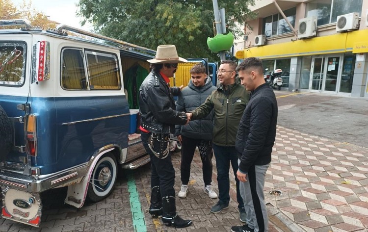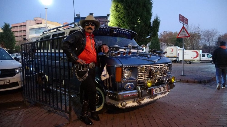 Kütahya’nın Tavşanlı ilçesine gelen “Çorum’un kovboyu” olarak bilinen 69 yaşındaki emekli sınıf öğretmeni Sefer Karakaş, giydiği kıyafetler ve taktığı aksesuarlar nedeniyle dikkatleri üzerine çekiyor. Çorum’da, çocukluk yıllarından itibaren giydiği kıyafetler ve taktığı aksesuarlar nedeniyle ‘Çorum’un kovboyu’ olarak bilinen 69 yaşındaki emekli sınıf öğretmeni Sefer Karakaş, şehir şehir gezerek gittiği yerlerdeki tarihi ve turistik yerleri ziyaret ediyor. Sefer Karakaş, giydiği kıyafetler, taktığı aksesuarlar ve kendisinin dizayn ettiği 1973 model minibüsüyle görenlerin ilgisini çekiyor.