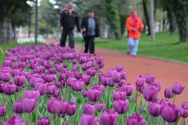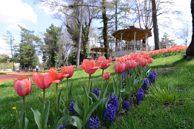 Baharın gelmesiyle birlikte Çorum’un park, bahçe ve refüjlerinde renk cümbüşü oluştu…