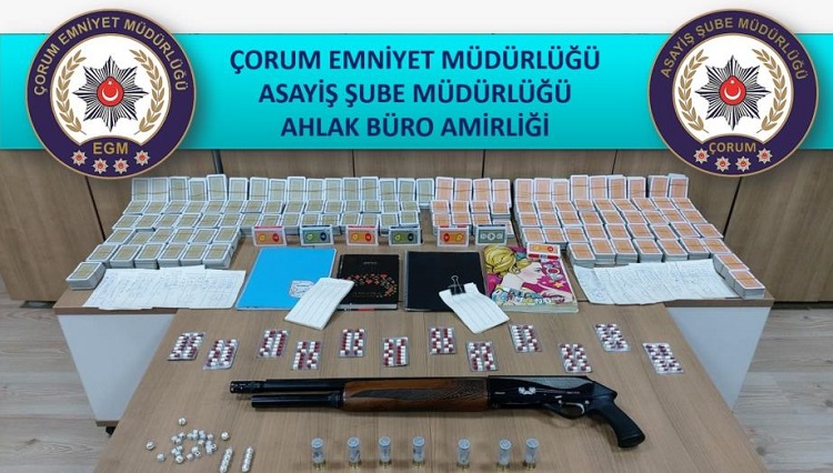 Çorum’da kapalı olması gerekirken açık olan bir derneğe polis ekipleri baskın düzenledi. Dernekte kumar ve oyun oynayan 7 kişiye toplam 33 bin 635 lira para cezası kesilirken, baskın anı da kameraya yansıdı. Edinilen bilgilere göre, Asayiş Şube Müdürlüğü Ahlak Büro Amirliği ekipleri Yeniyol Mahallesi Gazi Caddesi’nde faaliyet gösteren bir dernekte kumar oynandığı, silahlı şahısların bulunduğu bilgisine ulaştı. Bunun üzerine harekete geçen polis ekipleri savcılıktan alınan arama kararıyla derneğe baskın düzenledi. Baskında içeride bulunan 7 şahıs dernek binasının çeşitli yerlerine saklanan şahıslar yakalandı. Polis ekiplerinin yaptığı arama da, 118 deste kullanılmış iskambil kâğıdı, 7 deste kullanılmamış iskambil kâğıdı, 36 adet zar, 4 adet hesap defteri, 2 adet boş yazboz defteri, 14 adet oynanmış yazboz defteri, 1 adet pompalı tüfek, 7 adet 12 fişek, 14’er kapsüllü 12 tablet sentetik ecza ele geçirildi. Dernekte bulunan şahıslar haklarında işlem yapılmak üzere Emniyet Müdürlüğü’ne götürüldü. Nöbetçi Savcının talimatıyla dernek başkanına, “Kumar Oynanması İçin Yer ve İmkân Sağlama, Kullanmak için uyuşturucu veya uyarıcı madde satın almak, kabul etmek veya bulundurmak ya da uyuşturucu veya uyarıcı madde kullanmak (TCK 191) ve Avda ve Sporda Kullanılan Tüfekler, Nişan Tabancaları ve Av Bıçaklarının Yapımı, Alımı, Satımı ve Bulundurulmasına Dair Kanunun (2521 SKM) suçlarından” adli işlem yapılırken, dernekte yakalanan 7 şahsa kumar kabahatinden bin 336’şar TL olmak üzere toplamda 9 bin 352 TL, Covid-19 tedbirlerine aykırılık kabahatinden 3 bin 469’ar TL olmak üzere toplamda 24 bin 283 TL olmak üzere 33 bin 635 TL idari para cezası uygulandı. (İHA) https://www.blackjacktr.com/