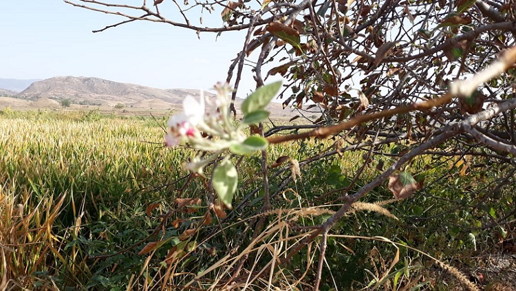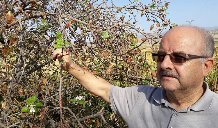 Son Güncelleme: 29 Eylül 2020 11:12 Çorum’un Osmancık ilçesinde Eylül ayında elma ağacı çiçek açtı. Osmancık İlçesi Evlik Köyü Taşlıkbaşı Mevki’inde çeltik tarlasının yanında bulunan elma ağacı sonbaharda yeniden filizlenip çiçek açtı. Dallardaki tomurcuklar ve çiçekleri fark eden arazi sahibi Mustafa Sefer Boyacı gördüğü manzara karşısında ’Mevsimin, havaların değişik gitmesi ağaçlarımızı da şaşırttı” diyerek şaşkınlığını gizleyemedi. Osmancık’ta tarım ile uğraştığını belirten Mustafa Boyacı; “Taşlıkbaşı mevki’indeki çeltik tarlamızda elma ağacımızın 28 Eylül 2020 tarihinde çiçek açtığını gördük. İlgimi çekti, bu şimdiye kadar gördüğüm bir şey değil, sıradan bir şey değil. Her zaman rastlayabileceğimiz bir şey değil, Allah’ın hikmeti. Mevsimin, havaların değişik gitmesi ağaçlarımızı da şaşırttı” şeklinde konuştu. (İHA)