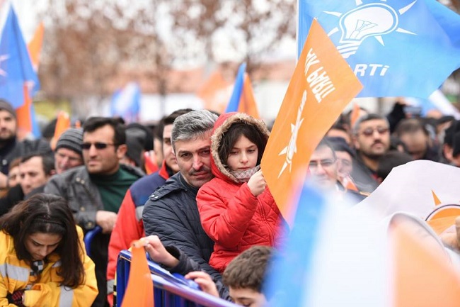 Sabahın erken saatlerinden itibaren Atatürk Spor Salonu’nun önünü dolduran binlerce vatandaş ellerindeki Türk bayraklarıyla, Cumhurbaşkanı Erdoğan’a yoğun sevgi gösterisinde bulundu. Afrin operasyonunda 9’uncu güne girildiğini hatırlatan Cumhurbaşkanı Erdoğan, “Kaç kişi etkisiz hale getirildi biliyor musunuz? 484. Az önce komutanla görüştüm ‘etkisiz hale getirilen terörist sayısı 484 oldu’ dedi. Tüm zor şartlara rağmen Mehmet’im devam ediyor yürümeye. Karşımda Ferhatları görüyorum. Ferhat nasıl dağları delerek Şirin’e kavuştuysa. Mehmet’imiz de dağları delerek maksada ulaşmanın derdinde” dedi.