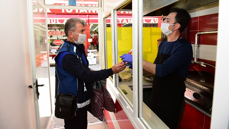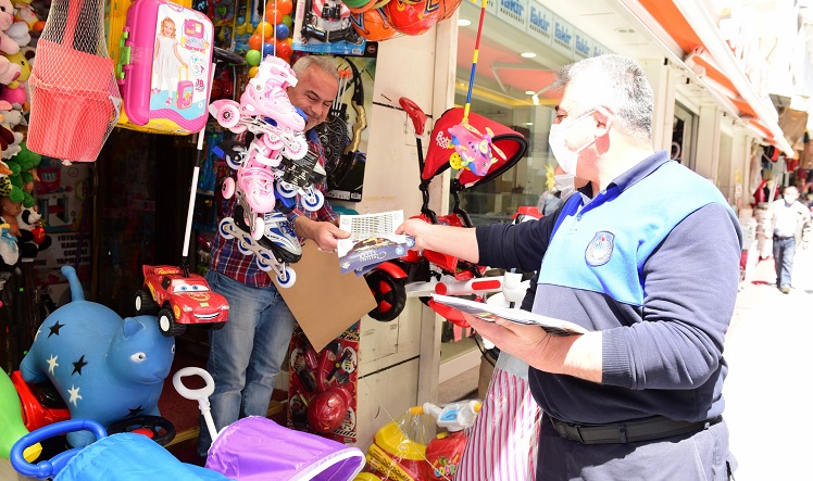 Son Güncelleme: 29 Nisan 2020 18:12 Koronavirüsle mücadele kapsamında kamu kuruluşları, otobüsler, caddeler ve toplu kullanım alanlarında dezenfekte çalışmasına tüm hızıyla devam eden Çorum Belediyesi, ticari faaliyetlerine devam eden esnafa yönelik de maske ve el solüsyonu dağıtımına devam ediyor. Ekipler ziyaret ettikleri esnafa ayrıca Başkan Aşgın’ın selamını ileterek Ramazan imsakiyesi de vermeyi ihmal etmiyor. Salgından esnafın ve vatandaşların zarar görmemesi için tedbirleri en üst düzeyde aldıklarını belirten Belediye Başkanı Dr. Halil İbrahim Aşgın, bu dağıtımlar esnasında koronavirüsle ilgili esnafa bilgiler verdiklerini dile getirdi. Kendilerine yönelik yapılan hizmetlerden memnuniyetlerini dile getiren esnaf da tüm bu hizmetler nedeniyle başta Belediye Başkanı Dr. Halil İbrahim Aşgın olmak üzere tüm emeği geçenlere teşekkür etti.