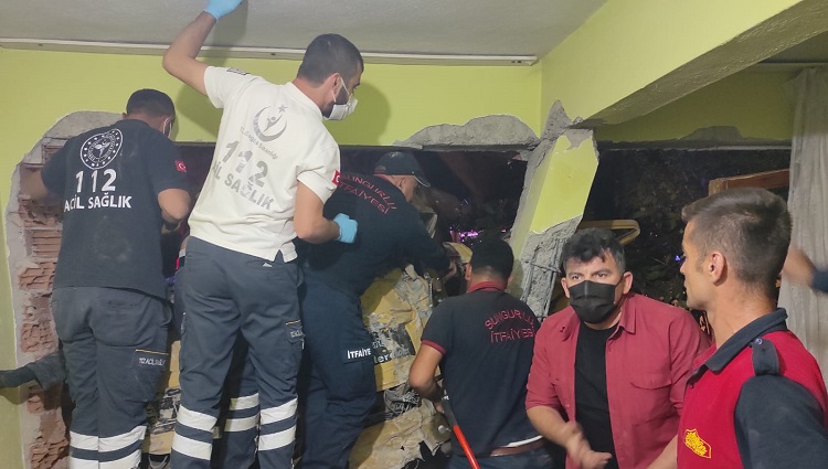 Son Güncelleme: 14 Ekim 2020 12:50 Çorum’un Boğazkale ilçesinde freninin patlaması sonucu kontrolden çıkan vincin 2 katlı eve çarpması sonucu 4 kişi yaralandı. İlçede elektrik direklerini değiştirmekle görevli şirkette çalışan operatör Celal Eren’in kullandığı 07 CFS 79 plakalı vincin freni boşaldı. Sürücünün direksiyon hakimiyetini kaybettiği vinç, kontrolden çıkarak Mustafa Badak’a ait 2 katlı evin önce bahçe duvarına, ardından da binaya çarptı. Vatandaşların bildirmesi üzerine olay yerine itfaiye, sağlık ve jandarma ekipleri sevk edildi. Boğazkale ve Sungurlu Belediyesi itfaiye ekipleri, çarpmanın etkisiyle vinçte sıkışan sürücü ile yanındaki Servet Kurt, Şükrü Koçak ve Abdulhekim İlik’i araçtan çıkardı. Uzun uğraşlar sonucu kurtarılan yaralılar, ambulanslarla Sungurlu ve Alaca Devlet hastaneleri ile Hitit Üniversitesi Erol Olçok Eğitim ve Araştırma Hastanesine kaldırıldı. Öte yandan vinç, iş makineleri yardımıyla evin bahçesinden çıkarıldı. (AA)