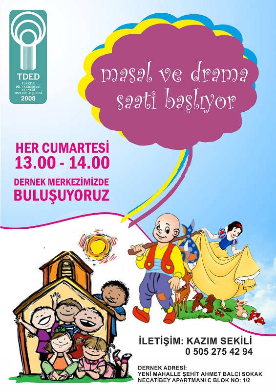 Türkiye Dil ve Edebiyat Derneği Osmancık Şubesi 4 ile 9 yaş arası çocuklara yönelik “Masal ve Drama Saati” adlı etkinlik düzenliyor.