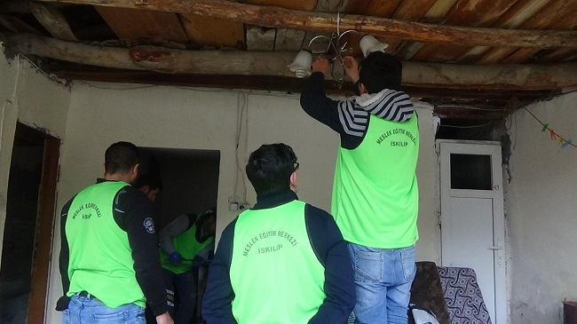 Son Güncelleme: 9 Nisan 2018 08:21 Milli Eğitim Bakanlığı; Mesleki ve Teknik Eğitim Genel Müdürlüğünün “Meslek Liseliler Ailelerle Buluşuyor” etkinliği kapsamında İskilip Mesleki Eğitim Merkezi Müdürlüğü “Mesleki Eğitim Hayata Değer Katıyor” adlı sosyal sorumluluk projesini hayata geçirdi. İskilip Mesleki Eğitim Merkezi Müdürlüğünce yürütülen proje çalışması hakkında bilgi veren Merkez Müdürü Fatih Şanlı, “İskilip Mesleki Eğitim Merkezinde farklı meslek alanlarında eğitim gören çırak-kalfalar ile meslek öğretmenlerinden oluşan proje ekibi, muhtarlıklar kanalı ile bölgede yalnız yaşayan, dar gelirli yaşlıların tespiti yapılarak mahalle muhtarı nezaretinde ev ziyareti düzenlenmektedir. Ev içerisinde bakım-onarım gerektiren kısımlar ile yaşlılarımızın ihtiyaçları belirlendikten sonra, bakım–onarım için gerekli ihtiyaç listesi projeye destek sunan paydaşların katkısı ile malzemeler temin edildikten sonra, yaşlımızın evine proje ekibi ile giderek, çırak öğrenciler kendi alanları ile ilgili onarım çalışmasını öğretmenleri nezaretinde yapmaktadırlar” dedi. Ders yılı sonuna kadar devam edeceği belirtilen proje kapsamında tespiti yapılan ve hedef kitle olarak belirtilen 20 kadar yalnız yaşayan, yoksul durumdaki yaşlılara ulaşılacağı belirtildi. Öğrenci ve öğretmenlerin birlikte gerçekleştirdiği proje çalışmasının eğitim öğretim sürecine katkısının çok fazla olduğunu belirten Şanlı, “bu çalışmalar öğrenci – öğretmen iletişimini arttırıyor, okulda saygıya, hoşgörüye dayalı bir ortam olmasını sağladığı gibi öğrenci disiplin olaylarının da yaşanmamasını sağlıyor” diye konuştu.