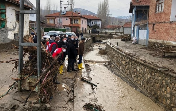 Olay, gece saatlerinde Çorum’un Sungurlu ilçesi Eşme köyünde meydana geldi. Edinilen bilgiye göre, köylüler tarafından dağın yamaç kısmı kazılarak yapılan gölet, aşırı yağış sonrasında taştı. Göletin taşması neticesinde köydeki yaklaşık 15 evi su bastı. Yaşanan olayla ilgili konuşan köy muhtarı Ali Atalay, “Hanımla birlikte oruca kalkmıştık. İnsan boyutundaki sular bir anda evimizin alt katını doldurdu ve kendimizi üst kata zor attık. Şu ana kadar 10-15 evde hasar var. Daha tüm köyü gezemedim. Can kaybının olmaması sevindirici” dedi. Olayın duyulmasının ardından Çorum Valisi Mustafa Çiftçi ve Sungurlu Kaymakamı Fatih Görmüş köye giderek incelemelerde bulundu. (İHA)