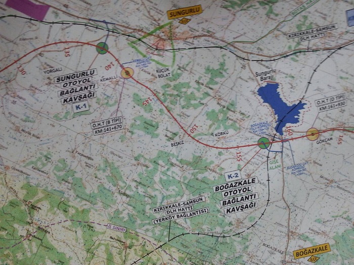 Alaca-Boğazkale-Salman köyü kavşağına kadar olan kısım; yapımı gerçekleştirilecek olan Sungurlu Barajı’nın su toplama alanıdır.