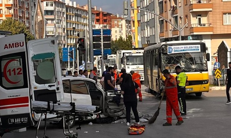Kazayı gören vatandaşların ihbarı üzerine olay yerine gelen sağlık ekipleri tarafından müdahaleleri yapılan yaralılar hastaneye kaldırıldı. Kaza ile ilgili inceleme başlatılırken, kaza anı saniye saniye Kent Güvenliği Sistemi kameralarına yansıdı. Görüntülerde, kavşaktan karşıya geçmek isteyen otobüs ile hafif ticari aracın çarpıştığı görülüyor. Çarpmanın etkisi ile hafif ticari araç metrelerce sürüklenerek durabiliyor. (İHA)