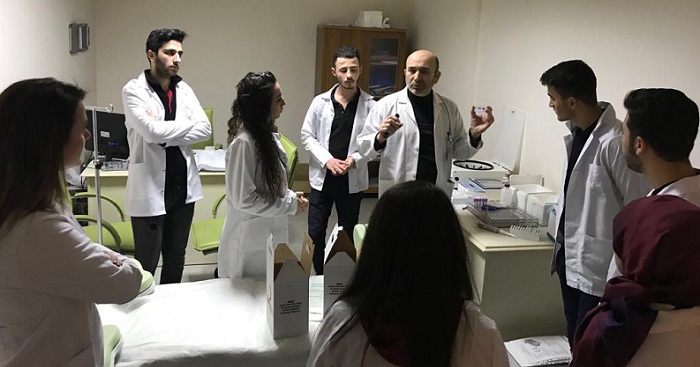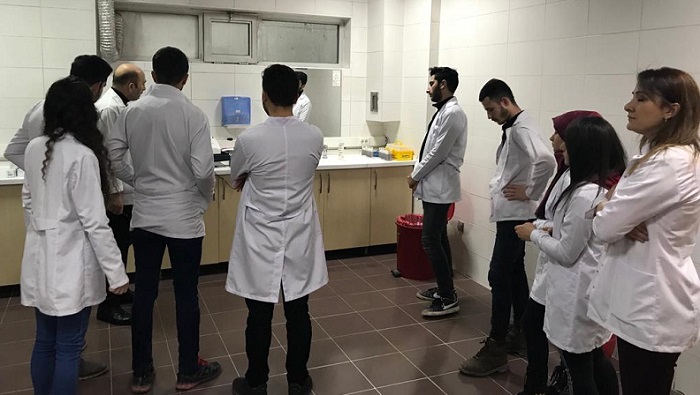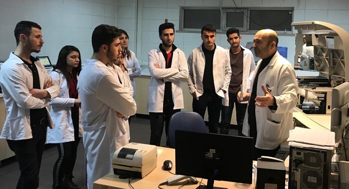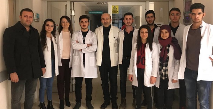 Son Güncelleme: 25 Aralık 2018 11:35 Hitit Üniversitesi Alaca Avni Çelik Meslek Yüksekokulu öğrencileri hastane laboratuvarını inceledi. Alaca Avni Çelik Meslek Yüksekokulu Müdürü Doç. Dr. Bahat Comba ile Hastane İdari Mali İşler Müdiresi Emine Erbaş’ın girişimleri ile Laborant ve Veteriner Sağlık Programı öğrencileri Alaca Devlet Hastanesi laboratuvarlarına teknik gezi yaptılar. Veterinerlik Bölümü öğretim üyeleri Dr. Öğretim Üyesi Arzu Comba ve Dr. Öğretim Üyesi Özgen Yılmaz’ın eşlik ettiği birinci sınıf öğrencileri laboratuvarda kullanılan cihazlar ve yapılan analizler hakkında Sorumlu Tekniker Ömer Koçak’tan bilgi aldı. Kan alma birimi, biyokimya ve hormon laboratuvarı, kan transfüzyon odası ile idrar ve gaita laboratuvarları öğrencilere tanıtılırken gelecekte kendilerine gerekebilecek bilgiler de verildi. Alaca Avni Çelik MYO Müdürü Comba, öğrencilerine kapılarını açan Alaca Devlet Hastanesi yetkilileri ile personeline teşekkür etti.