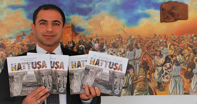 Son Güncelleme: 30 Ocak 2018 10:46 Çince, Korece, Japonca, İngilizce ve Türkçe olmak üzere 5 dilde basımı yapılan tanıtım ve kültür kitabı, son zamanlarda Hattuşa’ya ilgi duyan Uzakdoğu ülkelerine ve turizm sektörüne hitap etmeyi amaçlıyor. Anadolu toprakları üzerinde kurulmuş ilk büyük imparatorluk olan Hititler ve bu büyük imparatorluğa 450 sene başkentlik yapmış olan “Bin Tanrılı Şehir; Hattuşa” ya olan ilgiyi artırmaya yönelik birçok farklı alanda çalışmalar yapan Boğazkale Kaymakamı Turan Soğukoluk yaptığı açıklamada; “Medeniyetler tarihinde birçok ilke imza atmış olan Hititler; kendilerine başkent seçtikleri Hattuşa’dan dünyaya hem askeri hem ticari hem de kültürel alanda hükmetmek istemişler; devrin bir diğer büyük gücü Mısırlılar ile şu an Suriye topraklarında yer alan Kadeş şehrinde tarihin ilk dünya savaşını gerçekleştirmişler ve yine yazılı tarihin ilk barış ve dostluk antlaşması olan “Kadeş Barış Antlaşması”nı imzalayarak tarihteki sarsılmaz yerlerini almışlardır.