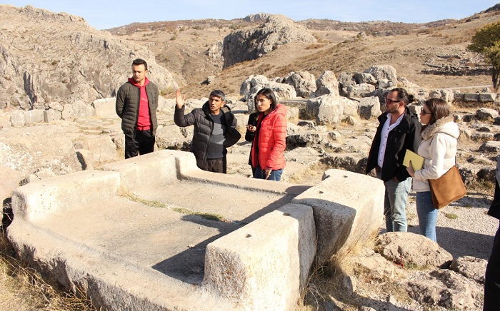 Son Güncelleme: 5 Kasım 2019 12:36 Çorum’a gelen Ulusal Basın Temsilcileri Hattuşa’ya hayran kaldı. Çorum Belediyesi’nin katkılarıyla ve Türkiye Satranç Federasyonunun ev sahipliğinde gerçekleşen Dünya 16 Yaş Altı Satranç Olimpiyatı için Çorum’a gelen Ulusal Basın Temsilcileri Hattuşa’yı gezdi. Rehber eşliğinde gerçekleşen gezide ilk olarak Hattuşa Ören Yerleri, Aslanlı Kapı, Hattuşa Kral Sarayı ve Yazılı Kaya da bulunan o çağa ait kalıntıların olduğu yerler ziyaret edildi. Binlerce yıllık medeniyete ev sahipliği yapmış Hititlerin yaşadıkları yerleri yakından gören basın mensupları tarihte yolculuk yaptı. Ulusal basın temsilcileri Çorum’a gelerek Hattuşa’yı görmelerini sağlayan Çorum Belediyesi’ne teşekkür etti.