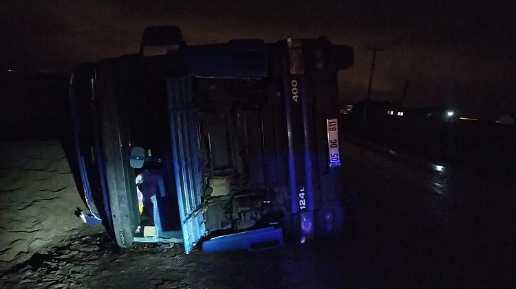 Kaza, Çorum- İskilip yolunda meydana geldi. Edinilen bilgiye göre, kent merkezinden İskilip ilçesine seyir halinde olan Kasım Z. idaresindeki 05 DG 811 plakalı tır, sürücüsünün direksiyon hakimiyetini kaybetmesi sonucu kontrolden çıkarak devrildi. Yoldan geçen sürücülerin ihbarı üzerine kaza yerinde sağlık ekipleri sevk edildi. Olay yerinde yapılan ilk müdahalenin ardından yaralı sürücü Hitit Üniversitesi Erol Olçok Eğitim ve Araştırma Hastanesine kaldırılarak tedavi altına alınırken tırda yüklü yem yola döküldü. Kaza ile ilgili başlatılan soruşturma sürüyor.