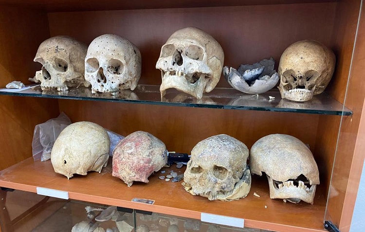 2011 yılında kazı çalışmaları sırasında yapı evresi altı yada kemiklik olarak adlandırılan ilginç bir alanla karşılaşıldığını dile getiren Doç. Dr. Çırak, “İçerisinde bol miktarda insan iskeletlerinin kafa taslarının bulunduğu bu alanda Anadolu’da daha önce rastlamadığımız bu kafatasının üzerinde Yunan alfabesi harfleriyle “Hacı Dimitrakis” yazılı bir kafatası bulundu. Kafatası üzerinde antropolojik analizler yaptığımızda bireyin 55-60 yaşlarında bir erkeğe ait olduğunu tespit ettik. “Hacı Dimitrakis” isminin özellikle kişinin belli bir dönemde hacı olmak için Kudüs’e gidip gelen bir Ortodoks’a bir din adamına ait olduğu daha sondaki değerlendirmelerde ortaya çıktı. Kafatası üzerinde yaptığımız analizlerde bir takı simetrik bozukluklar ve bir takım patolojilerinde var olduğu tespit ettik. Kafatasında iyi huylu tümör olduğunu gördük. Bunun dışında bilgisayarlı tomografi çekimlerinde kafa tası kemiklerinde incelme olduğunu tespit ettik” şeklinde konuştu.