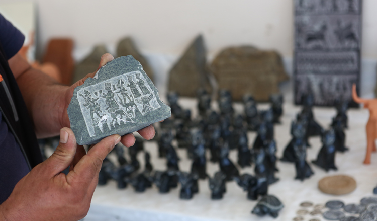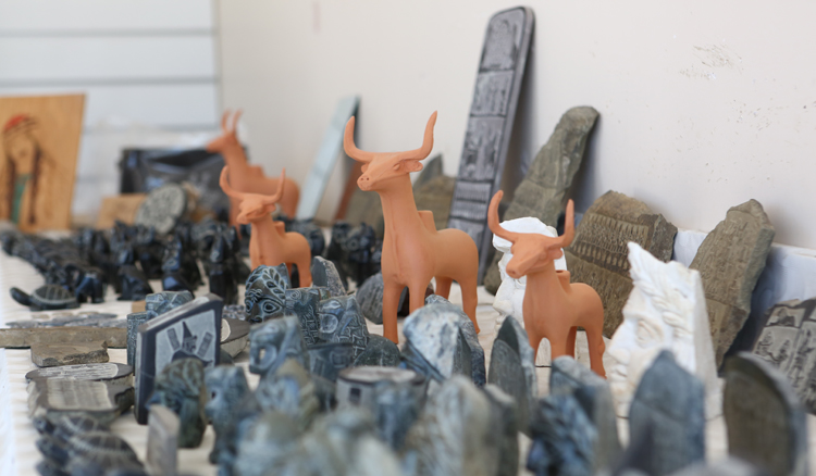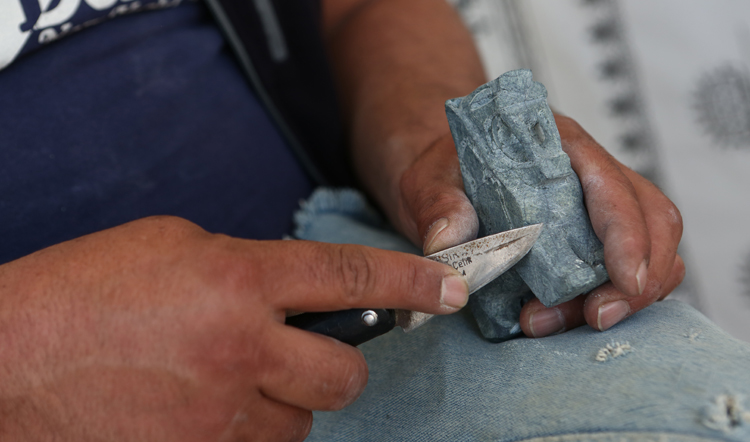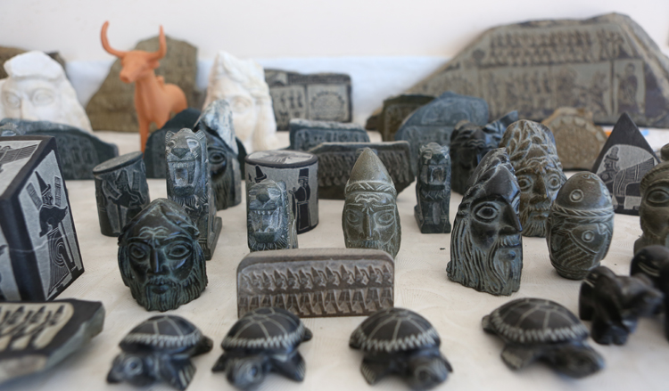 “Hititlerin eserlerini taşa işleyerek sanat eserine dönüştürüyorum. Taşların üzerine çoğunlukla Hitit aslanı, en büyük tanrıları olan fırtına tanrısı Teşup, güneş tanrıçası Arinna başta olmak üzere Hititlerin 12 tanrısı ve kraliyet ailesini işliyorum. Testere ve bıçak kullanıyorum. Bir taşa şekil vermek, onu işlemek 1 ya da 1,5 günümü alıyor. İşçiliğine ve taşın büyüklüğüne göre fiyatları değişiyor. En çok satılanlar, yeşil taşlar. Hititler yeşil taşı kutsal olarak kabul ediyormuş. Büyük Tapınak’ta bulunan ve Mısır’dan hediye olarak geldiği söylenen yeşil taşın kutsal taş olduğuna inanmışlar. Ona benzer taşlar da kullanıyorum. Ziyaretçiler yeşil taşı gördüğü zaman onu anımsattığı için hatıra olarak alıyor.”