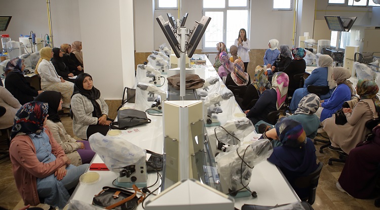 Üniversitede kadınlara kendilerini tanıma ve kişisel gelişimlerine katkı sağlamaya dönük eğitimler verildiğini belirten Baykam, şöyle devam etti: “Anne ve anne adaylarına içinde yaşadıkları toplumla ve aile içi iletişim, çocuklarıyla iletişim, çocuklarının teknolojik taleplerine ilişkin bilgiler, atık yönetimi, kendi sağlıkları ve toplum sağlığıyla ilgili bilmeleri gerekenleri anlatıyoruz. Örneğin Çorum‘da kenelerden dolayı görülen Kırım Kongo Kanamalı Ateşi hastalığı, kenenin vücuttan nasıl çıkartılacağı mikrobiyoloji laboratuvarında anlatılıyor. Medya okuryazarlığı bölümünde, medyadaki mesajların nasıl algılanması gerektiği anlatılıyor. Bir marketteki ürünün etiketinin nasıl okunması gerektiği, çocuğundaki bağımlılık olasılıklarını nasıl gözlemleyebileceği anlatılıyor. Diğer yandan yıkadığı ve yıkamadığı elinden alınan örnekleri mikrobiyoloji laboratuvarında mikroskopla inceleyerek, ellerin nasıl ve neden yıkanması gerektiğini öğreniyorlar.”
