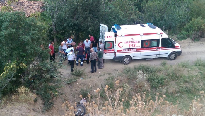 Çorum’un Osmancık ilçesinde virajı alamayan motosikletin yaklaşık 15 metre yükseklikten düşmesi sonucu 3 kişi yaralandı.