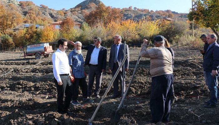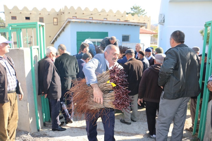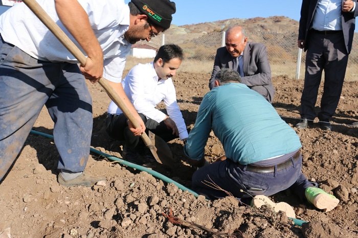 Son Güncelleme: 14 Kasım 2019 09:44 Boğazkale Kaymakamlığı tarafından hazırlanan proje kapsamında Höke bağlarında yaklaşık 100 dönüm bağ alanına 18 Bin adet üzüm fidanı dikimi yapıldı. 3 Vilayet, 5 Kaza ve 85 parça köyün bağcılık alanı olarak bilinen ve geçmişi Hitit Medeniyetine kadar uzanan tarihi Höke Bağları son yıllarda eski günlerini ve önemini yitirmiş durumda olduğu, Boğazkale Kaymakamlığı tarafından yürütülen proje kapsamında Tokat Tarımsal Araştırma Enstitüsünden bağcılık konusunda uzman ekipler ile yerinde inceleme ve araştırma çalışmaları yapılarak Höke Bağlarının yeniden canlandırılması planlandı. Boğazkale Kaymakamlığı tarafından yaklaşık bir yıl önce başlatılan çalışmalar kapsamında, arazi ve bağ alanlarının incelenmesi, toprak analizlerinin yapılması, Höke Üzümü’nün ıslah çalışmaları ve bölge iklimine en uygun üzüm türünün belirlenmesi aşamaları tamamlanarak yaklaşık 100 dönüm bağ alanına dikim yapıldı. Boğazkale İlçe Merkezi, Yekbas, Emirler ve Evci köylerinden üzüm yetiştiricilerine yönelik eğitim çalışmaları yapıldı. Tokat’ta bulunan modern bağcılık alanlarına araştırma gezileri düzenlenerek yetiştiricilerin de bilinçlenmesi ve modern teknikler ile bağcılık yapılması konusunda uzun soluklu bir çalışma yürütüldü. Bölgede üzüm yetiştiriciliği ve bağcılığın geliştirilmesi ve eskisi gibi bölge ekonomisine önemli katkılar sağlaması amacıyla başlatılan projede yaklaşık 100 dönüm bağ alanı oluşturulmak üzere 18 Bin Üzüm Fidanı üreticilerimize Boğazkale Kaymakamlığı tarafından ücretsiz olarak dağıtıldı. Yapılan dağıtımın ardından dikim yapılacak olan bağ alanlarını ve dikim çalışmalarını yerinde inceleyen İlçe Kaymakamı Yunus Ataman konuyla ilgili olarak yaptığı açıklamada; “Tarihi Hitit Medeniyetine kadar uzanan ve yaklaşık 4 bin yıllık bir geçmişi olan Höke Bağları gerek ilgisizlik gerekse günümüzün koşullarına uymayan üretim yöntemleri nedeniyle verimini ve önemini kaybetmiş durumdaydı. Bir zamanlar bölgenin önemli bir geçim kaynağı olan bu kıymetli ve tarihi bağ alanının daha modern yöntemlerle işlenmesi ve bölge halkına gelir sağlayacak potansiyele ulaşması amacıyla hem bu konuda teknik bilgi sahibi kurum ve kuruluşlarla hem de çiftçilerimizle bir araya gelerek bir yol haritası belirledik. Tokat Tarımsal Araştırma Enstitüsü ve İl Tarım Müdürlüğümüzde konunun uzmanı ekiplerle yerinde inceleme ve araştırmalar yaparak bölgenin hava koşulları ile toprak yapısına en uygun üzüm çeşidini tespit ederek bu konuda gerekli altyapıyı sağlamak adına toprak analizlerinden, tür ıslahına, üreticilerimizin eğitiminden, iyi uygulamaların yerinde incelenmesi amacıyla araştırma gezilerine kadar kapsamlı bir çalışma yürüterek projenin en önemli kısmı olan üzüm fidanlarının dikimi aşamasına geçtik. Tarihi Höke Bağlarında yaklaşık 100 dönüm modern bağ kurulması amacıyla 18 bin fidanı üreticilerimize dün itibarıyla ücretsiz olarak ulaştırdık. Bugün ise bağ alanlarını yine teknik ekibimiz ile dolaşarak usulüne uygun dikim yapılmasını ve çiftçilerimizin dikim aşamasında karşılaştıkları problemleri bertaraf etmeye çalışıyoruz. Bu konudaki çalışmalarımızı devam ettirerek bağ alanlarını artırmayı hedefliyoruz. Üzüm üretimin tekrar bölgenin önemli bir gelir kaynağı olacağına inanıyorum. Tüm çiftçilerimize hayırlı olmasını temenni ediyorum.” dedi.