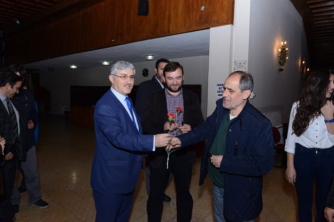Belediye Başkan Yardımcısı Turhan Candan, Düvenci Belediye Başkanı Necmettin Yalcın, Kültür ve Sosyal İşler Müdürü Mustafa Ercan, Tesisler Müdürü Mahmut Yabacıoğlu, Sosyal Yardım İşleri Müdürü Cengiz Özkader ve çok sayıda öğretmen ve şiir severin katıldığı programda ünlü şiir yorumcusu İbrahim Sadri, okuduğu şiirlerle dinleyicilerin beğenisini kazandı. Sahnede yer alan orkestrası ile birbirinden güzel şiirleri okuyan İbrahim Sadri’ye sahnede bir ara Belediye Başkan Yardımcısı Turhan Candan da eşlik etti. Candan, İbrahim Sadri’nin “Ölmek Zor” adlı şiirini okudu. Program sonunda Belediye Başkan Yardımcısı Turhan Candan, İbrahim Sadri’ye günün anısına çiçek takdim etti.
