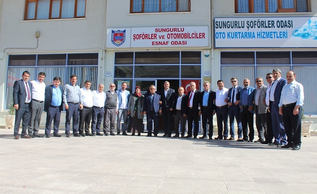 ÇESOB Başkanı Yalçın Kılıç, ziyaretinin ikinci durağında ise Sungurlu Şoförler ve Otomobilciler Odasını ziyaret etti. Kılıç, burada Sungurlu Şoförler ve Otomobilciler Odası Başkanı Hacı Karatekin ve yönetim kurulu üyeleri tarafından karşılandı. Yeniden oda başkanlığına seçilen Hacı Karatekin ve yönetimine tebriklerini ileten Kılıç, yapılan çalışmalara ilişkin oda üyeleriyle bir süre sohbet etti. Sungurlu Şoförler ve Otomobilciler Odası Başkanı Hacı Karatekin, 1 Mayıs’ta yapılacak birlik seçimlerinde ÇESOB Başkanı Yalçın Kılıç’ı destekleyeceklerini duyurdu.