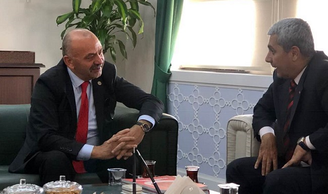 Son Güncelleme: 15 Ekim 2019 08:57 Çorum İl Emniyet Müdürü Mehmet Gülser’e makamında ziyaret eden Başkan İsbir, kendisine yeni görevinde başarılar diledi. Sıcak karşılamasından dolayı teşekkürlerini dile getiren Başkan İsbir Çorum ilimiz ülkemizin Türkiye’nin önde gelen illerinden birisidir. Şehrimizde yerel yönetimler ve kamu kurumları arasında güzel bir diyalog ve çalışma ortamı var. Biz Ortaköy Belediyesi olarak eğitim, sağlık, güvenlik gibi birçok konuda kurumlarımıza iletişim halindeyiz. Halkımızın huzur ve güvenliğine yönelik projelerde, bugüne kadar olduğu gibi bundan sonra da ortak çalışma yürütmeye hazırız. Sizlere yeni görevinizde başarılar diliyorum” dedi. Başkan İsbir’e ziyareti için teşekkür eden Çorum İl Emniyet Mehmet Gülser, Çorum’un huzur ve güvenliği için her türlü çaba ve gayreti göstereceğini belirterek “Emniyet teşkilatı olarak bizlerde, huzur ve güvenin tesisi için halkımız ile yan yana olacağız. Bizden önceki arkadaşlardan devraldığımız bu görevi, bizler de en güzel şekilde devam ettireceğiz. Nazik ziyaretleriniz için sizlere teşekkür ediyorum” diye konuştu. Yapılan konuşmaların ardından ziyaret sohbet ortamında devam etti.