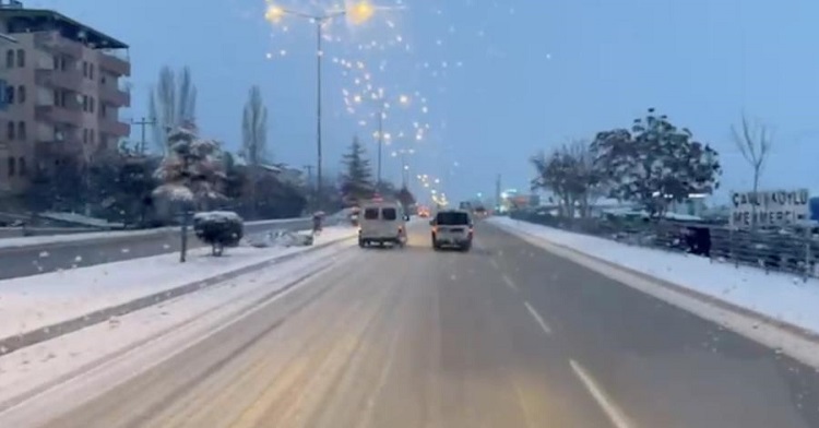 Kar yağışı sebebiyle manevra alanı kısıtlanan ve genişliği sebebiyle orta şeritten ilerleyemeyen itfaiye aracı, bir süre sonra sağ şeridin boşalmasıyla hafif ticari aracı geçebildi. O anlar ise cep telefonuyla görüntülendi.