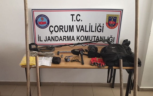 Yakalanan zanlılar ile birlikte 1 adet el detektörü, 30 adet kalem pil, 20 metre kablo, 2 adet kazma, 2 adet kürek, 1 adet portatif kazı aleti, 1 adet çok maksatlı çakı, 1 adet el detektörüne ait kulaklık, 2 çift iş eldiveni, 1 adet yağmurluk ele geçirildi. Yasadışı define arama suçu şüphesiyle yakalanan 3 şüpheli ile ele geçirilen suç unsurları hakkında Cumhuriyet Başsavcısı’nın talimatıyla gerekli yasal işleme başlatıldı. (İHA)