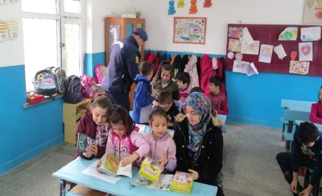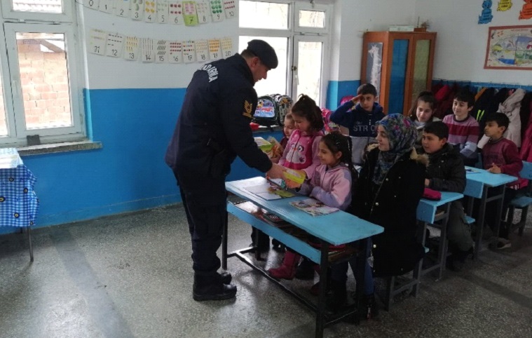 Son Güncelleme: 17 Şubat 2020 10:46 Çorum İl Jandarma Komutanlığına bağlı Mecitözü İlçe Jandarma Komutanlığınca, ilkokul öğrencilerine kitap hediye edildi. Mecitözü Jandarma Komutanlığında görevli askerler, ilçeye bağlı Köprübaşı Köyü İlkokulunu ziyaret etti. Ziyarette jandarma personeli, okuma alışkanlıklarını pekiştirmek amacıyla öğrencilere hikaye kitabı hediye etti. Ziyarette ayrıca öğrencilere jandarmanın görevleri ve nasıl jandarma olunduğuyla ilgili bilgi verildi.