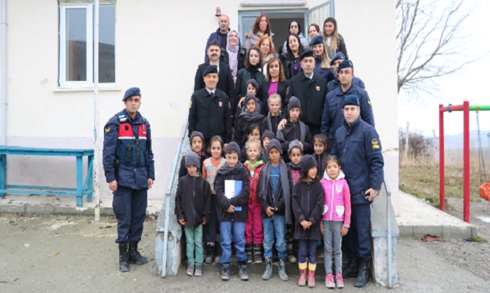 Son Güncelleme: 30 Aralık 2019 12:38 Maddi durumu yetersiz öğrencilerin kış şartlarında eğitimlerini aksatmadan sürdürmelerine katkı sağlamak amacıyla çalışma başlatan jandarma eşleri, çok sayıda atkı, bere ve kazak gibi kışlık giysiler hazırladı. El emeği kışlık giysiler, Jandarma Komutanlığında görevli personel ve eşlerince Oğuzlar ilçesine bağlı Şaphane, Cevizli ve Kayı köyleri ile Mecitözü İlçesine bağlı Işıklı, Köprübaşı ve Sarıhasan köylerindeki ilkokullar ziyaret edilerek öğrencilere hediye edildi. Ziyaretlerde ayrıca jandarmanın yapısı, görevleri ve nasıl jandarma olunabileceğiyle ilgili sunumlar yapıldı.