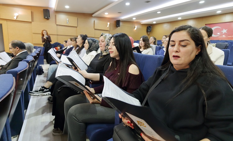 Kadınların hepsinin bu tür etkinliklere katılması gerektiğini düşünüyorum. Çok eğlenceli, stres atıcı, enerji veren etkinlikler bunlar.” dedi. Şehit Yakınları ve Gaziler Birimi’nde görevli Nursena Taş ise koroda kimsenin profesyonel olmadığını, amatör heyecanla çalışmaları sürdürdüklerini anlatarak, “Profesyonel değiliz, kendi kendine şarkı söylemeyi seven kadınlar olarak bir araya geldik. Seslerimizin güzel olduğunu, şarkı söylemenin bizi ne kadar rahatlattığını öğrendik. Çalışmalar keyifli gidiyor. Bütün kadınların buraya gelip bizimle birlikte şarkı söylemesini isterim.” şeklinde konuştu. (AA)