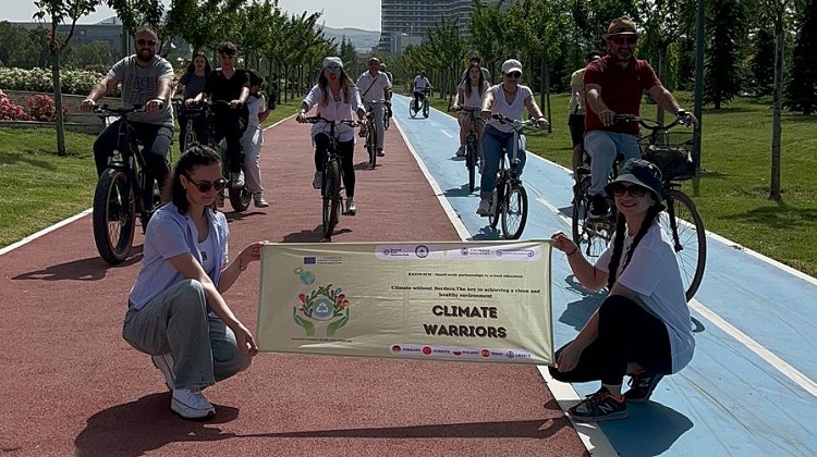 Öğrencilerin temiz bir çevre elde etmek için uluslararası iş birlikleri yapmalarını hedefleyen proje kapsamında Çorum‘daki öğrenciler, karbon salınımına dikkat çekmek amacıyla vatandaşların yoğun olarak bulunduğu Millet Bahçesi’nde bisiklet sürdü. (AA)