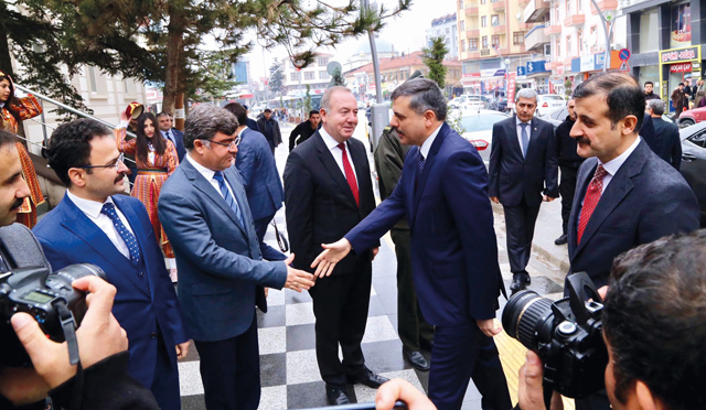 Son Güncelleme: 28 Kasım 2019 14:22 İl Güvenlik, Asayiş ve Koordinasyon toplantısı için Sungurlu’ya gelen Çorum Valisi Mustafa Çiftçi, Kaymakam Mitat Gözen’i ziyaret etti. Sabah saatlerinde ilçeye gelen Çorum Valisi Mustafa Çiftçi, ilk olarak ilçe kaymakamları ile birlikte Sungurlu Kaymakamı Mitat Gözen’i makamında ziyaret etti. Kaymakam Mitat Gözen ile bir süre görüşen Vali Çiftçi daha sonra Öğretmenevi’nde düzenlenecek olan İl Koordinasyon Kurulu toplantısına katıldı. Vali Mustafa Çiftçi’yi Kaymakamlık binası önünde Kaymakam Mitat Gözen, Belediye Başkanı Abdulkadir Şahiner, Garnizon Komutan vekili Eyyüp Bayaktar, İlçe Emniyet Müdürü İrfan Korkmaz, Jandarma Komutanı teğmen Sedat Özmen, Belediye Başkan Yardımcısı Ahmet Yılmaz ve ilçe kaymakamları ile birlikte çok sayıda daire müdürleri karşıladı.