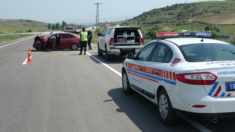 Çorum‘da otomobil ile hafif ticari aracın çarpışması sonucu 3 kişi yaralandı. M.M.E. (69) idaresindeki 06 EU 5257 otomobil, Çorum-Osmancık yolu 10. kilometresinde kontrolden çıkarak karşı şeritten gelen S.K’nin (27) kullandığı 19 UD 369 plakalı hafif ticari araçla çarpıştı. Çarpışmanın etkisi ile hafif ticari araç yoldan çıkarak tarlaya devrildi.