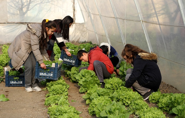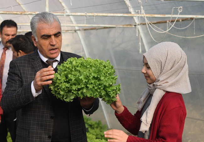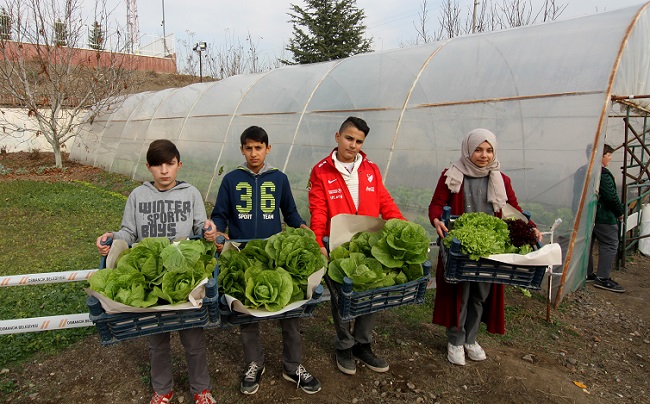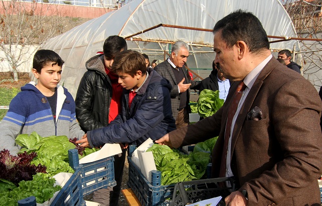 Son Güncelleme: 18 Aralık 2019 11:08 İlçe merkezindeki Orgeneral Ahmet Çörekçi Yatılı Bölge Okulu’nda 2012 yılında başlatılan “Kendin Üret, Kendin Tüket Projesi” kapsamında okul bahçesindeki alanda sera oluşturuldu. Öğrenciler tarafından yaklaşık 200 metrekarelik serada 7 yıldır üretilen domates, marul, salatalık, ıspanak, tere, roka, maydanoz ve yeşil soğan gibi sebzeler, öncelikle okulun mutfağında değerlendiriliyor. İhtiyaç fazlası ürünler ise ilçedeki diğer pansiyonlara gönderiliyor. Okul müdürü İdris Makineci, AA muhabirine yaptığı açıklamada, proje ile yerli üretim ve tarım konusunda farkındalık oluşturmayı amaçladıklarını söyledi. Cumhurbaşkanı Recep Tayyip Erdoğan’ın da ısrarla vurguladığı gibi yerli ve milli üretimi teşvik etmek, toprak ve tarım konusunda farkındalık oluşturmak gayesiyle okul bahçesinde serada tarım yaptıklarını anlatan Makineci, “Son olarak eylül ayında marul diktik. Tüketime ve servise hazır hale geldiler. Projede tamamen öğrencilerimiz çalıştı.” dedi. Proje koordinatörü ve okulun fen bilgisi öğretmeni Mehmet Gökel de öğrencilerin üretmeyi öğrenmesini hedefledikleri için projeyi hayata geçirdiklerinin altını çizdi. Eğitimin amacının çocukları hayata hazırlamak olduğunu vurgulayan Gökel, “Ülkemizde milyonlarca öğrenci var. Bu çocuklarının hepsinin hakim, savcı, doktor olma şansı yok. Bu yüzden en azından hayatta kendi ayakları üzerine durabilmeleri, yurt dışından ithalat yapmadan, kendi parasının değerini de koruyarak üretmeyi, yetiştirmeyi, para kazanmayı, ev geçindirmeyi öğrenmeleri için en basitinden başladık.” diye konuştu. Okulun 8. sınıf öğrencisi Elif Karakuş ise ileride kimseye muhtaç olmamak için sebze yetiştirmeyi öğrenmeye karar verdiğini dile getirerek, “Okul serasındaki sebze yetiştirme etkinliklerine aralıksız devam ediyoruz. Büyüdüğümüzde kimseye muhtaç olmadan kendi işimizi kendimiz yapabiliriz.” ifadesini kullandı. Öğrencilerden Özcan Başkaya ise projeye başladıkları günden itibaren daha sağlıklı besinler tükettiklerini, başkalarının da tüketmesine katkı sağladıklarını kaydetti. (A.A)
