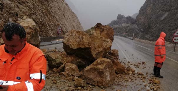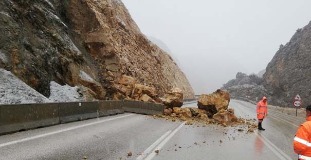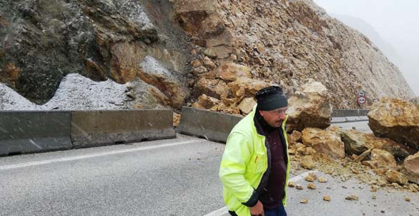 Son Güncelleme: 8 Şubat 2020 13:28 Havanın aşırı yağışlı olması sebebi ile yaşanan toprak kayması nedeni ile yolun bir kısmı trafiğe kapandı. Trafik ise ekipler tarafından kontrollü olarak sağlanmaya çalışılıyor. Düşen büyük kaya parçaları yolun bir geçidini tamamen kapatırken, yolda gerekli güvenlik önlemleri de alındı. Ekiplerin anında olay yerine ulaştığı yolda araçların kontrollü olarak yoldan geçmeleri için önlemler alındı. Kırkdilim Yolunda daha öncede heyelan yaşanmış, bunun üzerine bölge 3 ay araç trafiğine kapatılarak güvenlik önlemleri artırılmıştı.