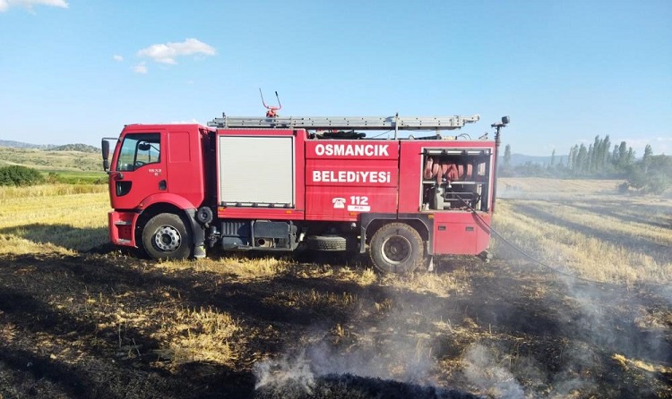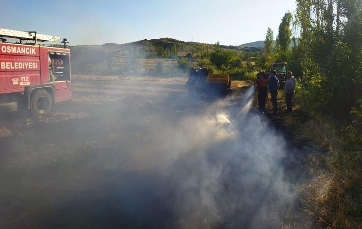 Köylüler yangını kendi imkanları ile söndüremeyince Osmancık Belediyesi’ni arayarak yardım istediler. Kısa sürede köye gelen belediyeye ait itfaiye ekipleri, çıkan yangına müdahale ederek kontrol altına aldılar. Sap makinesinden çıkan kıvılcımın neden olduğu belirlenen yangında makine ile toplanan saman balyaları ve tarladaki anızlar yanarak zarar gördü. (İHA)