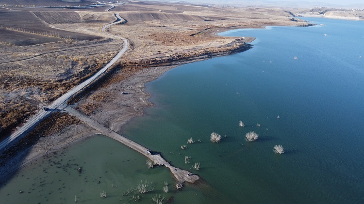 Baraj suları çekilince eski köy ve kara yolu ortaya çıktı