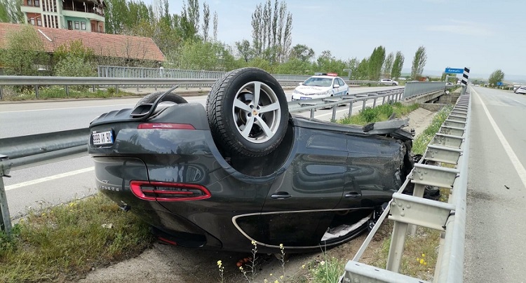 Çorum’un Sungurlu ilçesinde kontrolden çıkan otomobil refüje devrildi. Edinilen bilgilere göre, kaza Sungurlu-Kırıkkale karayolunun 7. kilometresinde meydana geldi. Sungurlu’dan Ankara istikametine seyir halinde olan Ayşe Y. yönetimindeki 06 AY 6666 plakalı Porsche marka otomobil, sürücünün direksiyon hakimiyetini kaybetmesi sonucu bariyerleri aşarak refüje devrildi. Kazada ölen ya da yaralanan olmazken, araçta maddi hasar meydana geldi. Araç çekici yardımıyla kaza yerinden kaldırılırken, kazayla ilgili soruşturma başlatıldı. (İHA)